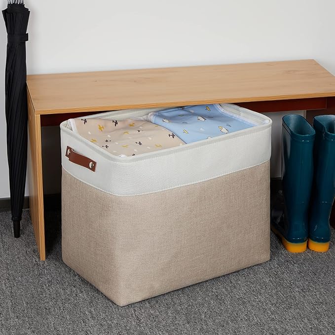 DULLEMELO Extra Large Storage Baskets, Fabric Storage Bins for Organizing Shelves Nursery Toys Books, Closet Baskets and Bins with Handles, White&Khaki, 2-Pack