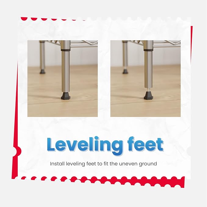 - 5.**Easy Assembly:** Assembly is a breeze with clear instructions and minimal hardware for our shelves. No need for complicated tools or extensive DIY skills; you can have this shelf set up quickly and effortlessly. Enjoy the convenience of hassle-free assembly and start organizing your space in no time with this metal shelving.