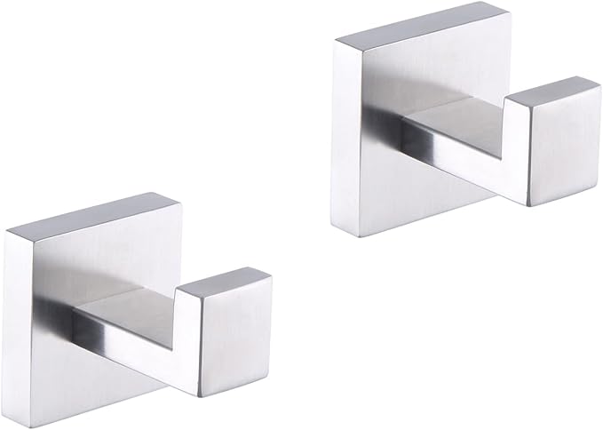 GERZWY Brushed Stainless Steel Towel Hook Robe Hook Coat Hook Heavy Duty Wall Mounted Luxury Hooks for Bathroom Hotel 2 Pack FG1607-2LS