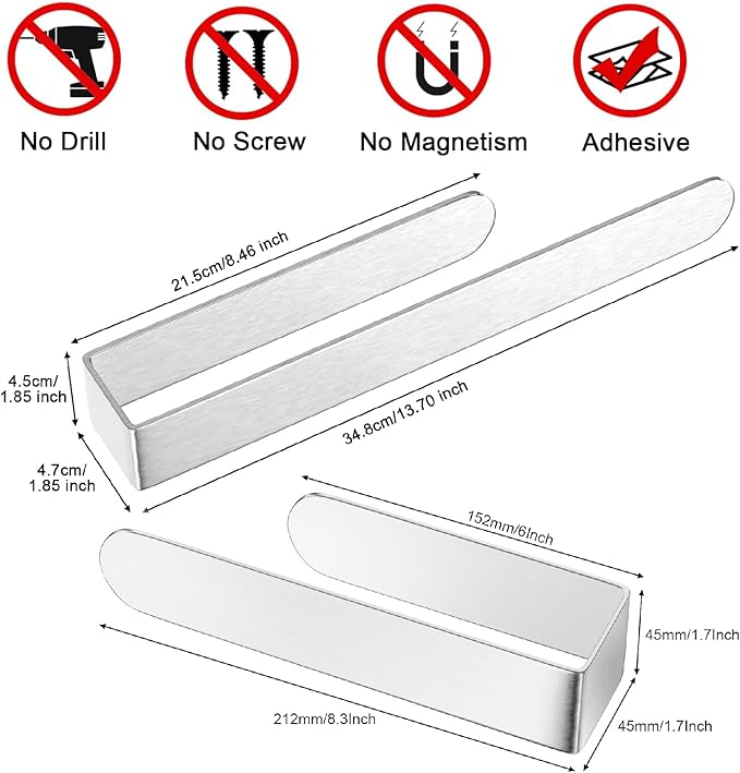 HUFEEOH Adhesive Hand Towel Holder, 8 Inch Sticky Towel Bar and 14 Inch Towel Holder Wall Mounted, Stainless Steel Kitchen Towel Holder Hand Towel Rack for Bahtroom Hotel RV Kitchen (Silver-8"&14”)
