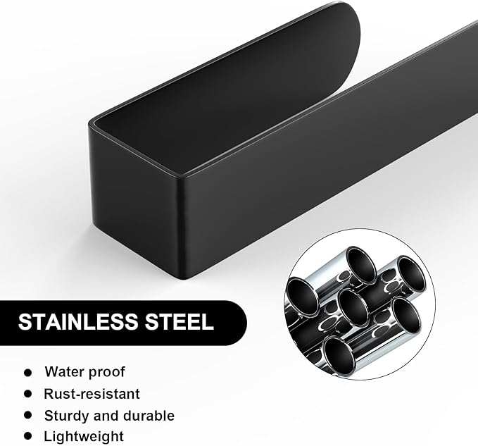 HUFEEOH Adhesive Hand Towel Holder, 8 Inch Sticky Towel and 14 Inch Bar Towel Holder Wall Mounted, Stainless Steel Kitchen Towel Holder Hand Towel Rack for Bahtroom Hotel RV Kitchen (Black 8"&14”)