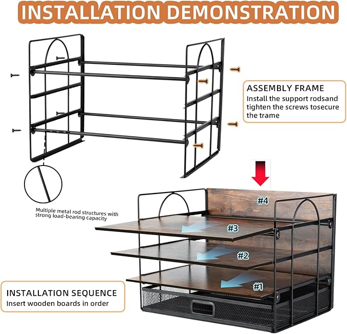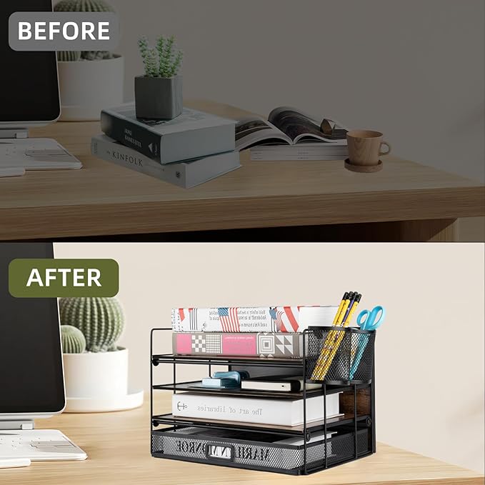 - 【EASY TO ASSEMBLE】- The paper organizer for desk is very easy to install and comes with an installation guide. You can quickly set it up and start using it to organize your desk and improve your productivity.
