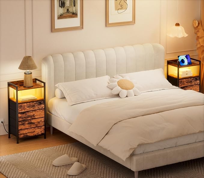 - Sturdy Structure: Constructed from high-quality materials, this nightstand with charging is durable and long-lasting. The overall frame is made from metal and the shelf is wooden. And the anti-toppling device is provided to help to reduce the risk of injuries, especially important in households with children or pets.