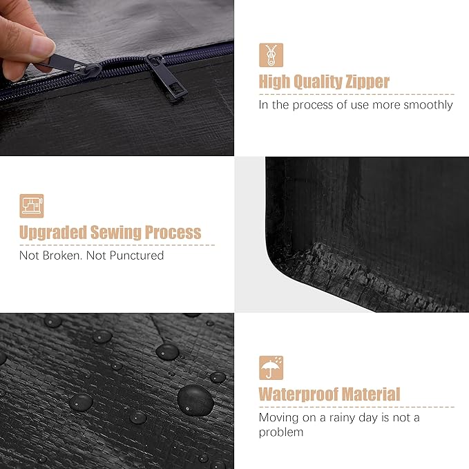 - Enhanced Quality: Designed for reusability and durability, these bags are water-resistant and more robust than cardboard boxes, plastic bins, and other containers, ensuring your items stay safe and secure while in transit.