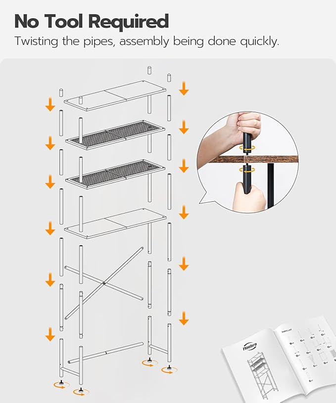 - Tool-Free Assembly: This HOOBRO bathroom organizer is designed for easy assembly. With a twist-on structure, you can quickly assemble it with just your hands, without the need for any additional tools. No more confusion with numerous parts and screws