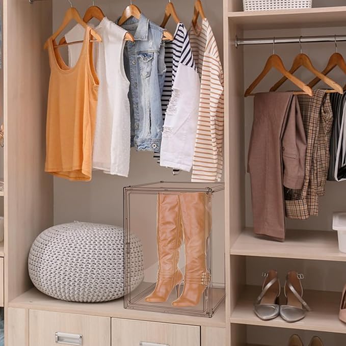 - Extra-large size: With dimensions of 17.7"X13"X13", these bins are the largest available on the market. They can accommodate large-sized handbags, tote bags, high-top shoes, and high-calf boots.