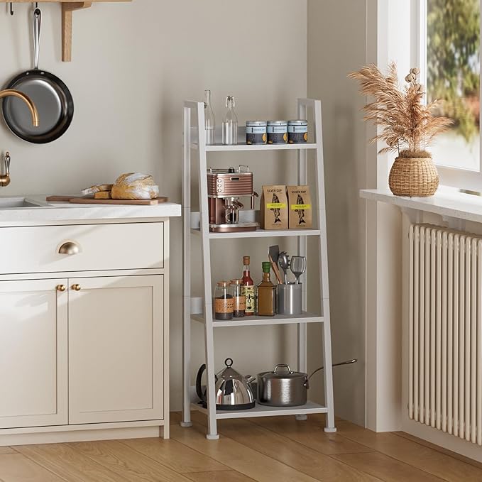 - Versatile Ladder Shelf: This 4-tier metal freestanding storage shelves can be used as plant stand, bookcase, bathroom cabinet, storage organizer in your living room, bedroom, kitchen, balcony, office, corridor, bathroom or any other space. In addition to holding the daily necessities, it is also an ideal choice to display some artworks.