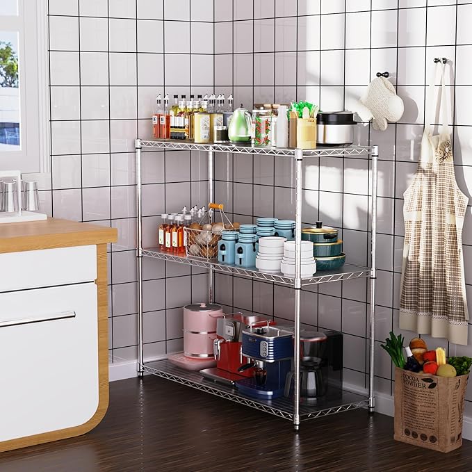 - EXTREMELY DURABLE: Wire shelving made of heavy steel, it has excellent rust resistance and oxidation resistance. Our wire shelf liner is crafted to provide unparalleled quality, longevity, function and beauty. Better quality thicker than the competition. The 3 tier shelf unit passed NSF certified, safe and reliable. Storage rack are perfect addition to home, office.