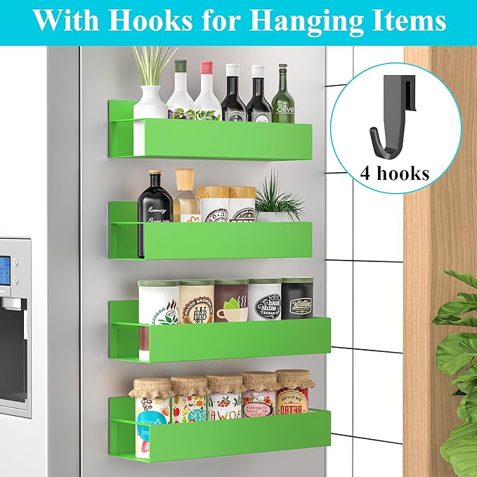 4 Pack Magnetic Spice Storage Rack Organizer for Refrigerator and Oven, Green Fridge Organizers and Storage