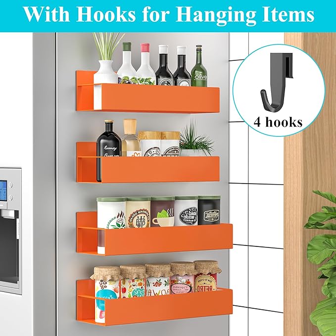 4 Pack Magnetic Spice Storage Rack Organizer for Refrigerator and Oven, Orange Fridge Organizers and Storage
