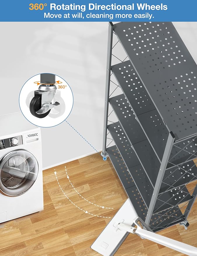 - [2X Thicker Than Other Folding Racks] Rock-solid and worry-free load-bearing. We utilize thickened and widened iron plates, with columns measuring 1.5x3 cm, providing heavy-duty shelving with exceptional stability, allowing you to confidently place a variety of items.