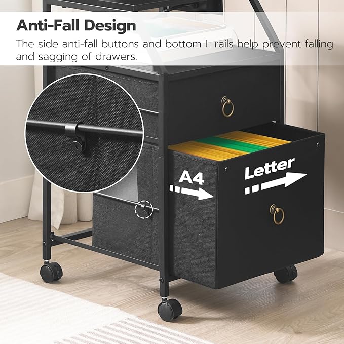 - Free Movement and Fixing: The file cabinets for home office adopts 4 smooth swivel casters, providing excellent sliding and adapting to different surfaces. Among them, built-in brakes on 2 casters to keep it in position and add stability, either stationary or mobile, giving you full control!