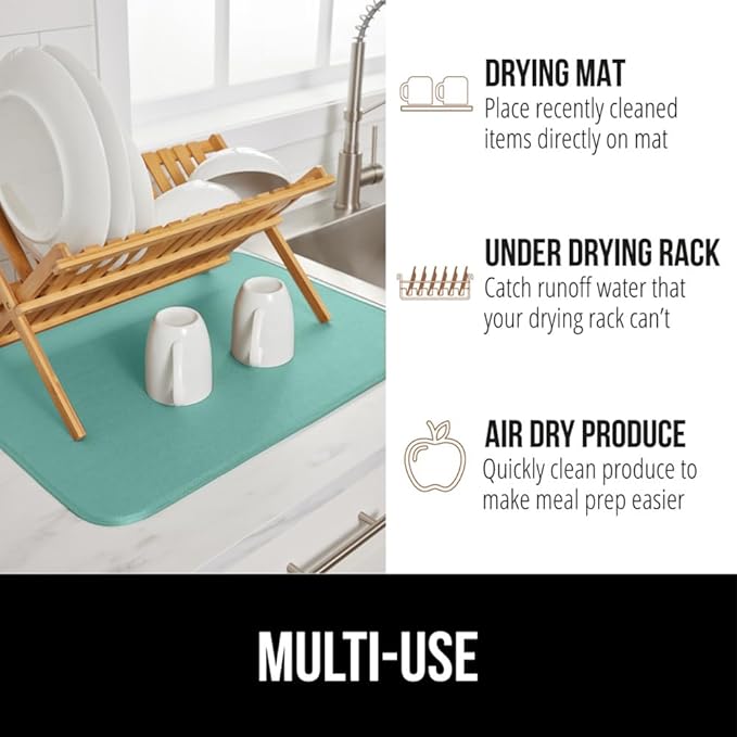 GORILLA GRIP Ultra Water Absorbent Microfiber Dish Drying Mat, 18x32, Quick Dry Thick Mesh, Slip Resistant Pad for Sink Dishes or Under Rack, Kitchen Counter Accessories, Machine Wash Mats, Mint