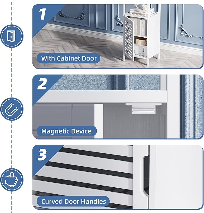 - WANT MULTIPLE USE SCENARIO? – PUT IT ANYWHERE YOU LIKE. Simple, minimalist look matches a variety of home decor styles, both large and small rooms. This freestanding storage cabinet goes well with bathroom, kitchen, living room, home office, entryway, bedroom, hallway for towels, toiletries, spice and small appliances, decorative items, books, shoes, bags, umbrellas, potted plants…