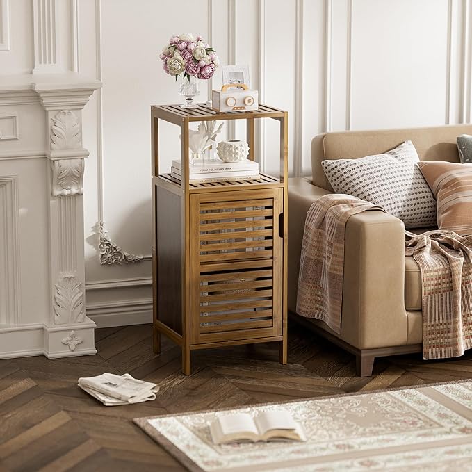 HITNET Bathroom Cabinet, Bamboo Floor Cabinet Free Standing, 4 Tier Sofa Side Storage Cupboard for Living Room Kitchen Bedroom, Walnut