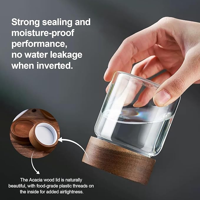 - - 【WIDE APPLICATIONS】Glass canning jars storage are suitable for storing various dried ingredients to retain their freshness.Glass jars with wood lids perfect for storing dry food , such as,cookies,dried beans,pepper,oatmeal,jams,chutneys, rice, flour, tea, coffee, biscuits, candy,cheese,flour, sugar, seeds,etc. Keep your kitchen tidy and safe,saving space and convenient .