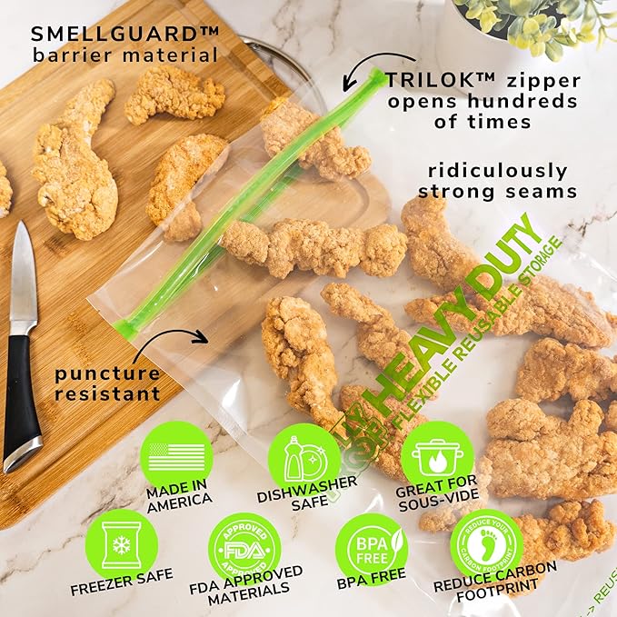 - Bulk Purchase: 50-Pack of Extra Extra-Large Heavy-Duty Ziplocks. Scent-Free, Air-Tight Bags for Food. Reusable Freezer Bags. Budget-Friendly, Multipurpose Functionality Makes Them Essential for the Kitchen, Outdoor Adventure, or Storage Needs,