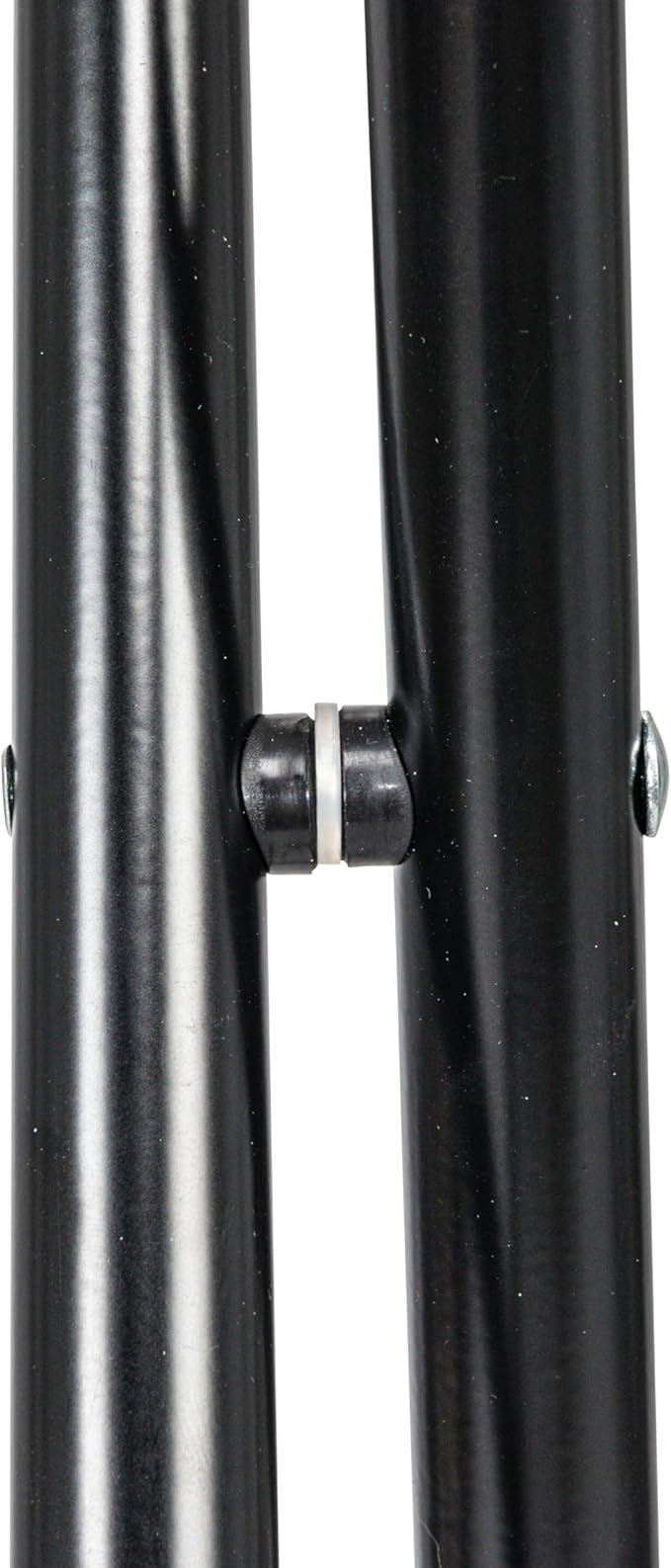 - Features a metal X-frame with 2 hanging bars and a black finish.