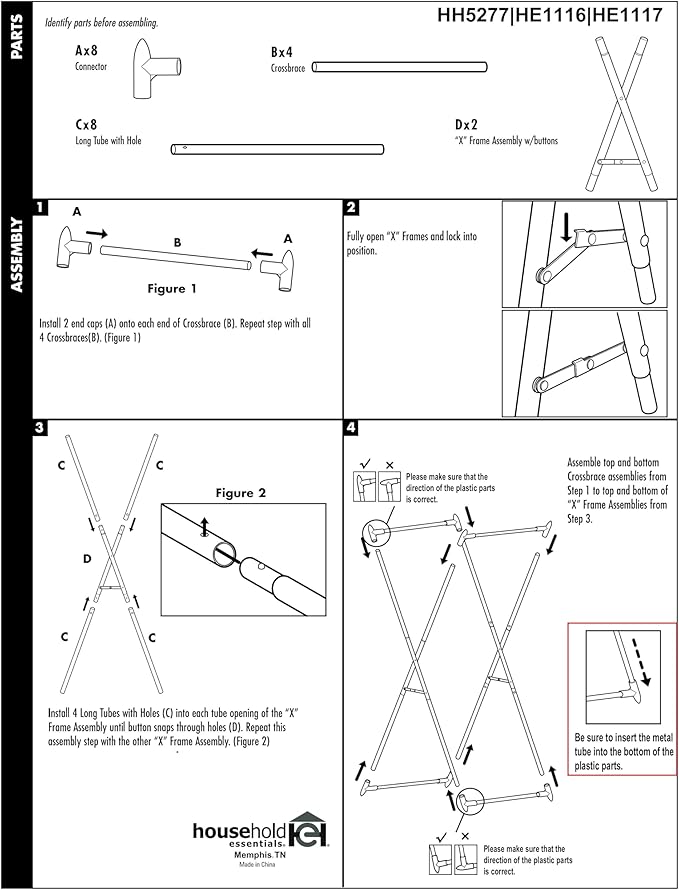 Household Essentials Valet Folding Clothes Rack, Strong Metal X-Frame, Chic Design, Great for Guest and Dressing Rooms, Portable and Easy to Use, Folds Flat, Black