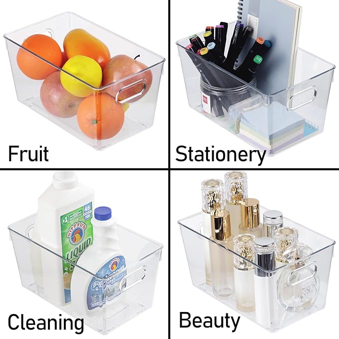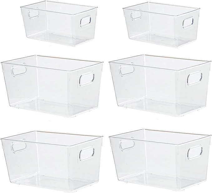 6pcs Plastic Storage Bin 2-Size Clear Storage Containers for Kitchen Pantry Organization and Storage Bins, Organizing Bins with Built in Handles, Cabinet Organizers, Clear