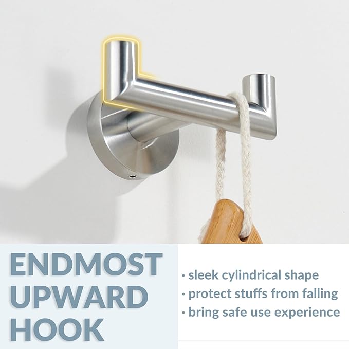 APLusee Bath Towel Hook, 304 Stainless Steel Double Robe Hanger Brushed Nickel, Functional Home Organizer Wall Mounted