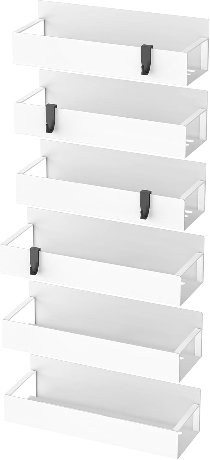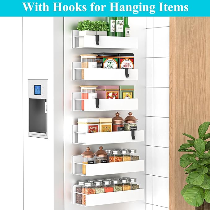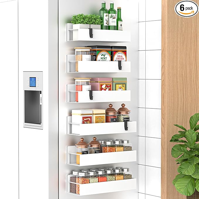 6 Pack Magnetic Spice Storage Rack Organizer for Refrigerator and Oven, White Fridge Organizers and Storage