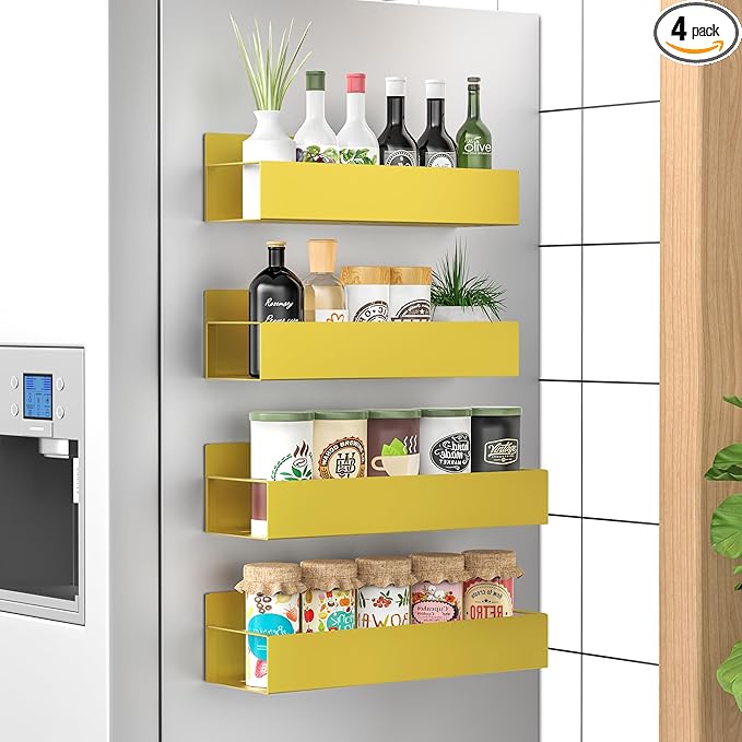 4 Pack Magnetic Spice Storage Rack Organizer for Refrigerator and Oven, Gold Fridge Organizers and Storage