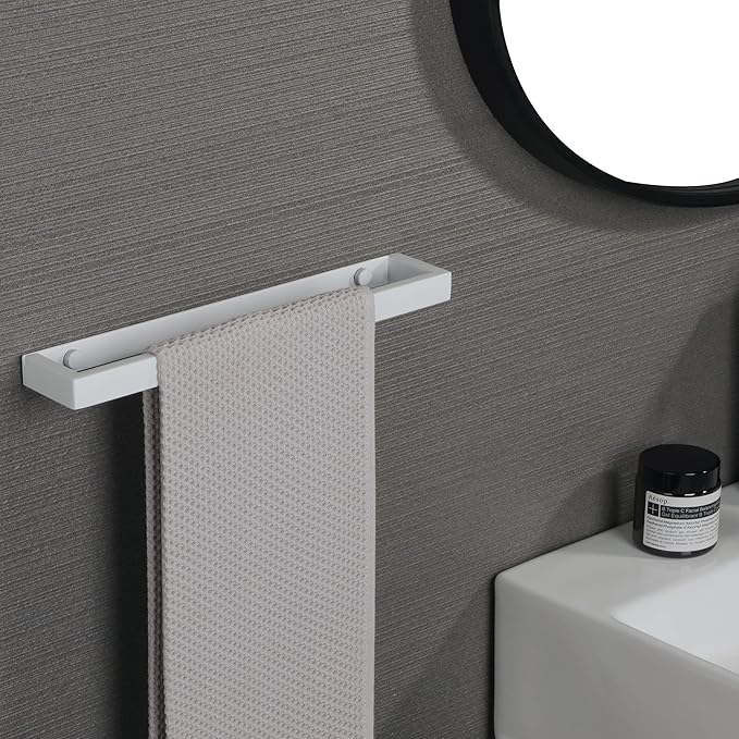 - 【Nice Whtie Finish】The towel bar is finished by super high temperature matte white painting, smooth white surface, pure and beautiful appearance, suitable for a variety of bathroom decoration styles, not easy to remove paint and oxidation.