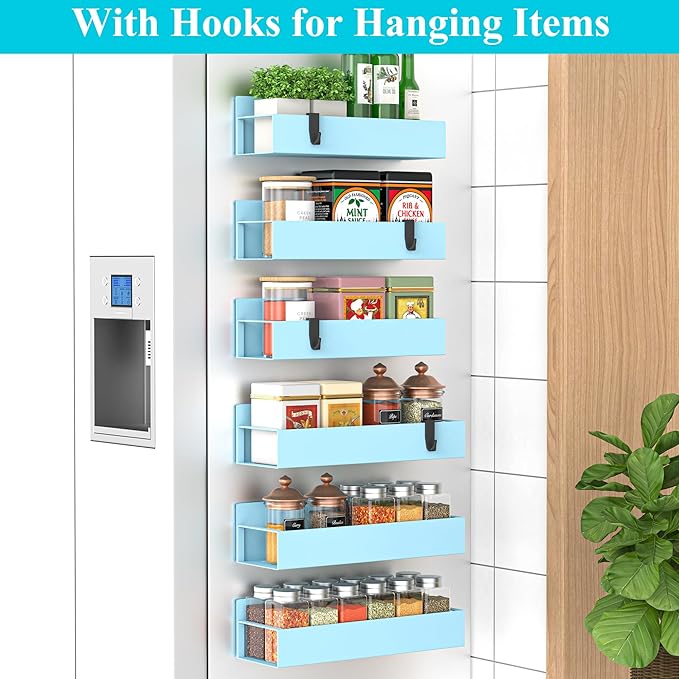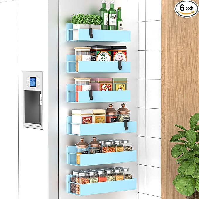 6 Pack Magnetic Spice Storage Rack Organizer for Refrigerator and Oven, Blue Fridge Organizers and Storage