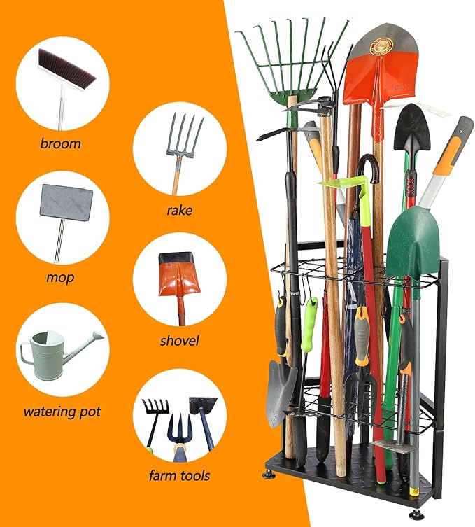 Garden Tool Organizer,Yard Tool Rack Heavy Duty,Free Standing for Garage Corner,Garage Organization,Garage Organizers and Storage,Garden Tool Holder for Lawn,Shed,Outdoor,Metal