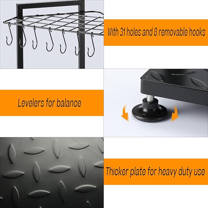 - 【Corner space saver】 UU Major garage tool rack is designed with suitable size16.9*11.8*24.4",which can be placed in corner of garage, garden, shed, farm and backyard,maximize the use of corner space.