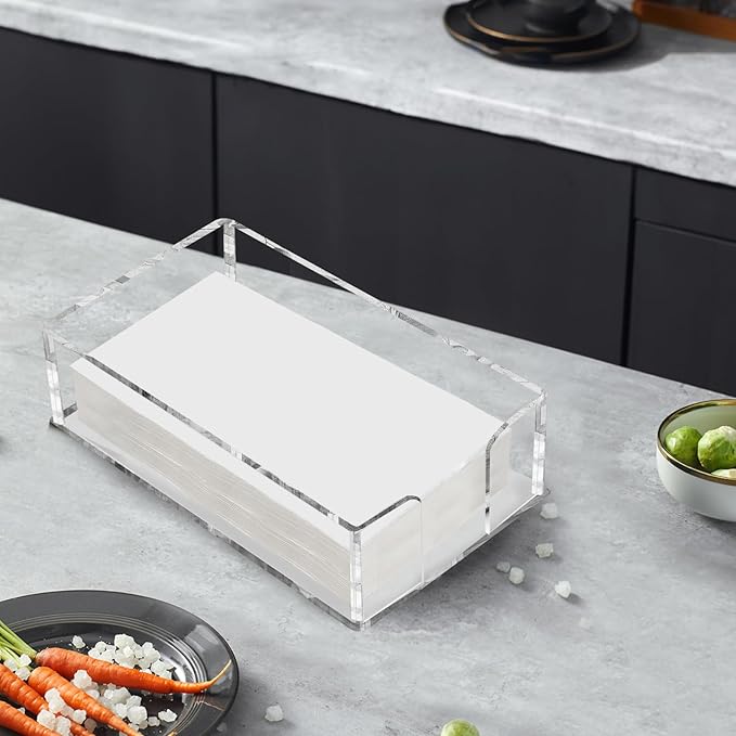 Fengzhe Acrylic Guest Towel Napkin Holder, Clear Bathroom Paper Hand Towels Storage Tray, Disposable Paper Towel Holder for Bathroom, Kitchen, Parties, Weddings, and Various Events .8.5''x4.9''x2.4''