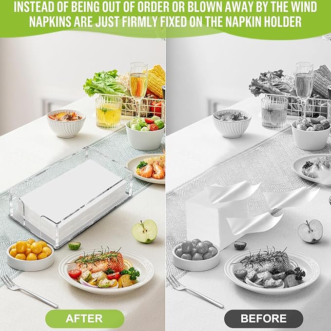 - Environmentally Friendly and Safe: Serving as an ideal alternative to glass, especially suitable for households with children or pets, this napkin holder provides a safe, fracture-free usage experience. Beyond its practicality, this napkin box demonstrates thoughtful consideration for both environmental and home safety concerns.aving - Perfect for storing tissues and napkins or even a small menu.