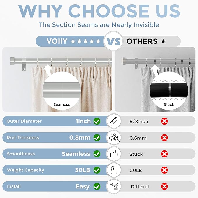 - 【ARFTERMARKET WARRANTY】VOIIY curtain rods all come with a three-year warranty for our customers, and if you contact us, all issues will be resolved within 24 hours