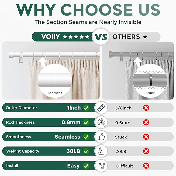 - 【ARFTERMARKET WARRANTY】VOIIY curtain rods all come with a three-year warranty for our customers, and if you contact us, all issues will be resolved within 24 hours