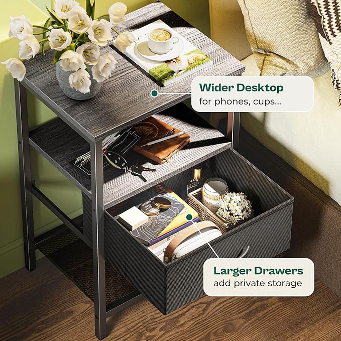 - 【Storage Do You a Favour】Our bed side table comes with a fabric drawer, desktop, and a mesh shelf that offers ample storage space. Stow away books, electronics, or bedtime essentials, this couch side table has got you covered