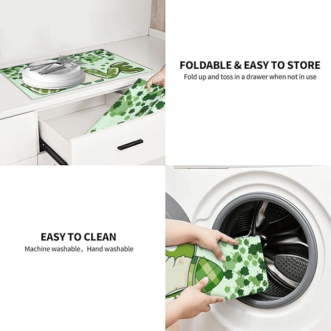 Green Clover Love Dish Drying Mat 18x24 For Kitchen Counter Absorbent Microfiber Dishes Pad Dish Drainer Rack Mats Fast Dry Kitchen Accessories