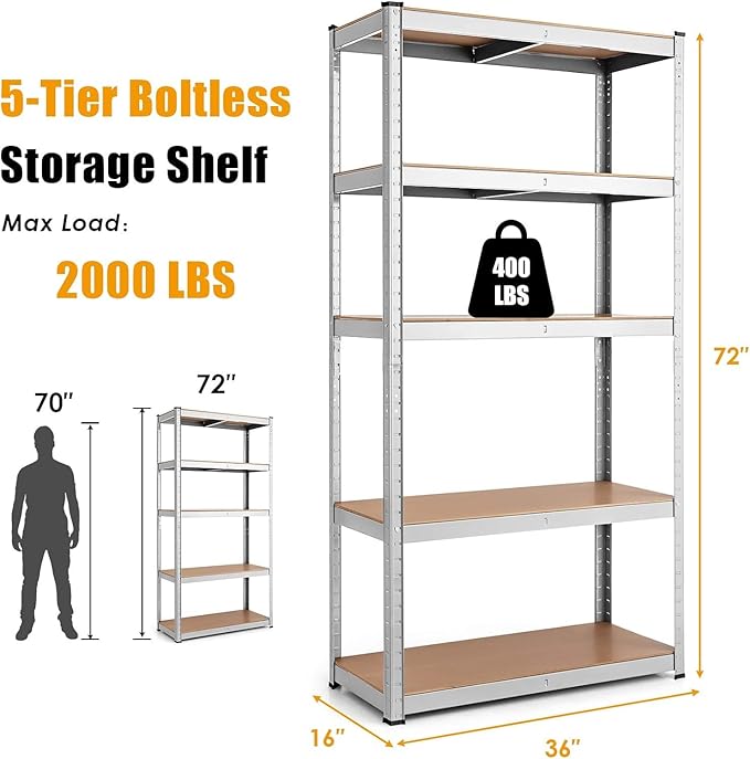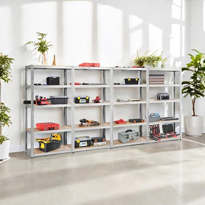 ERGOMASTER 72" Storage Shelves, Heavy Duty Steel Frame 5-Tier Garage Shelf, Metal Multi-Use Storage Shelving Unit for Home/Office/Dormitory/Garage (4, Silver)