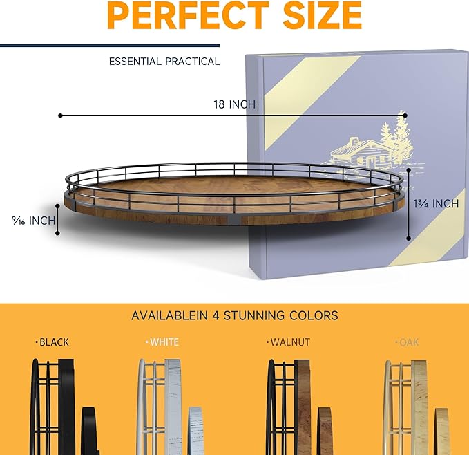 Farmhouse Oak 18" Lazy Susan Turntable Organizer for Cabinet, Round Wooden Lazy Susan Organization and Storage for Dining Table, Pantry, Kitchen, Countertop, Cupboard,Home Decor, Walnut Wood (18")