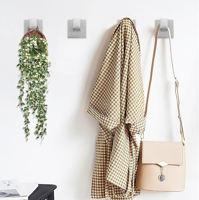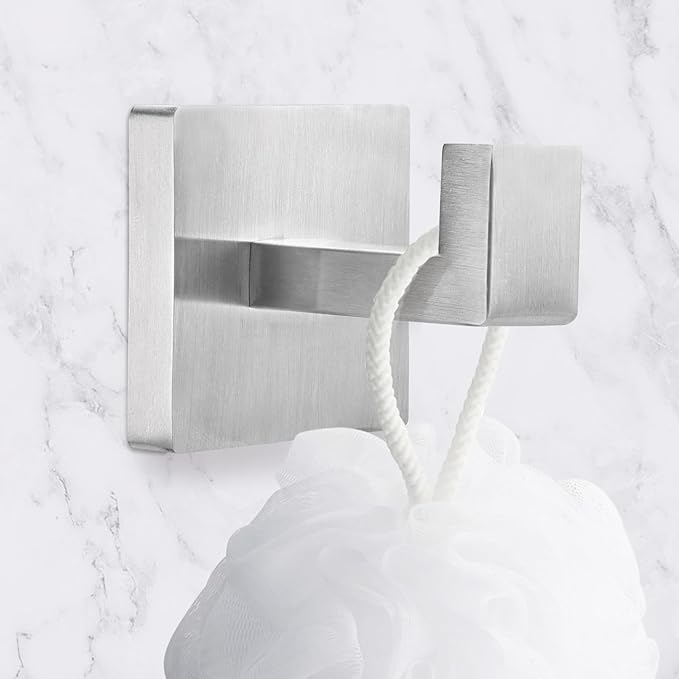 - Classy Appearance: This coat hooks set designed with a modern squared look, surface is brushed silver, which could be your bathroom & living room & bedroom & kitchen & pool & closet decor and holder