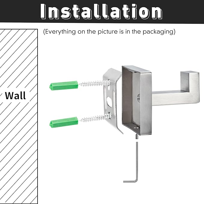 - Package Includes: Square silver hooks * 4, screws * 8, wall anchors * 8, hex keys * 1