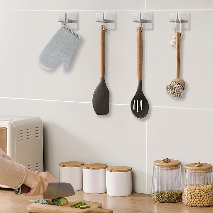 IBosins 4 Pack Towel Hooks Hand Towel Holder for Bathroom Wall Livingroom Bedroom Kitchen Closet Heavy Duty Stainless Steel Hook Hanger for Robe, Bath Towel, Coat (Square Brushed Silver)