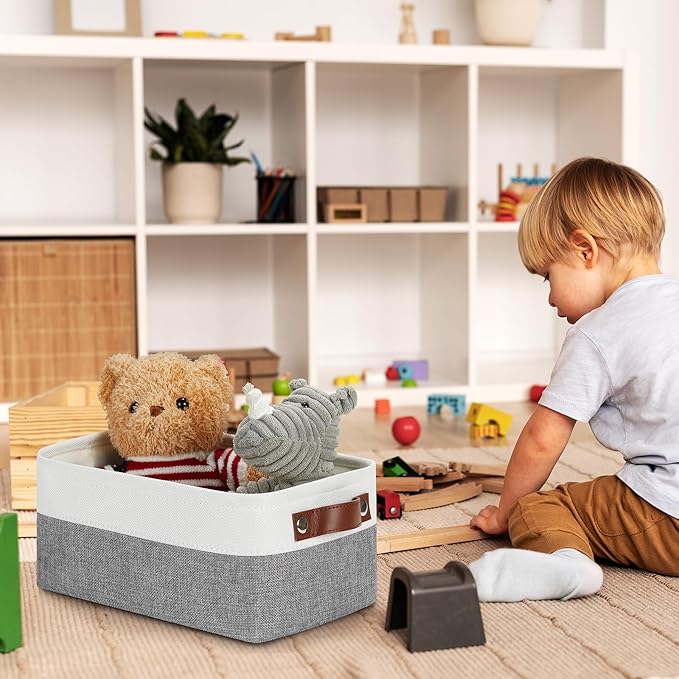 - Premium Material: These storage bins are made with premium-quality fabric and thickened EVA. Soft&comfortable, sturdy&resistant, lightweight, and easy to use over time. The fabric bins are more suitable for storing towels and baby clothes.