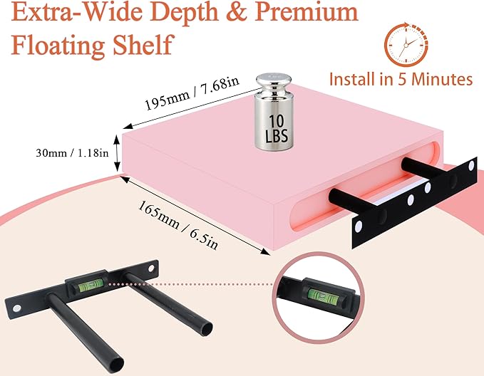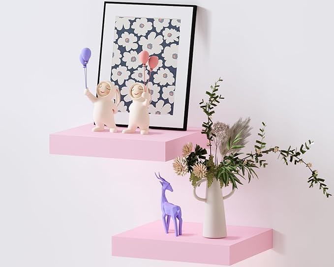 - 【Cute room decor】If you need a kawaii room decor, pink room decor or pink wall decor, floating shelves is the best choice for pink room decor aesthetic. Small floating shelves is also the best display ledge. For example, Funko Pop figures, small pots of green plants, portable speakers, headphones, Various small ornaments, decorations and something like that. Personalize your living room, bedroom, dorm, or office. Decorating children's room is undoubtedly a good choice.