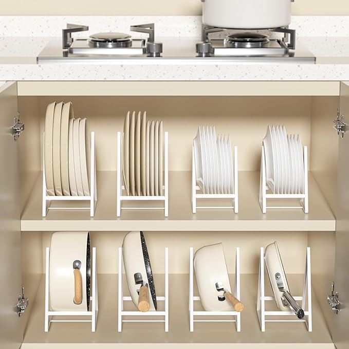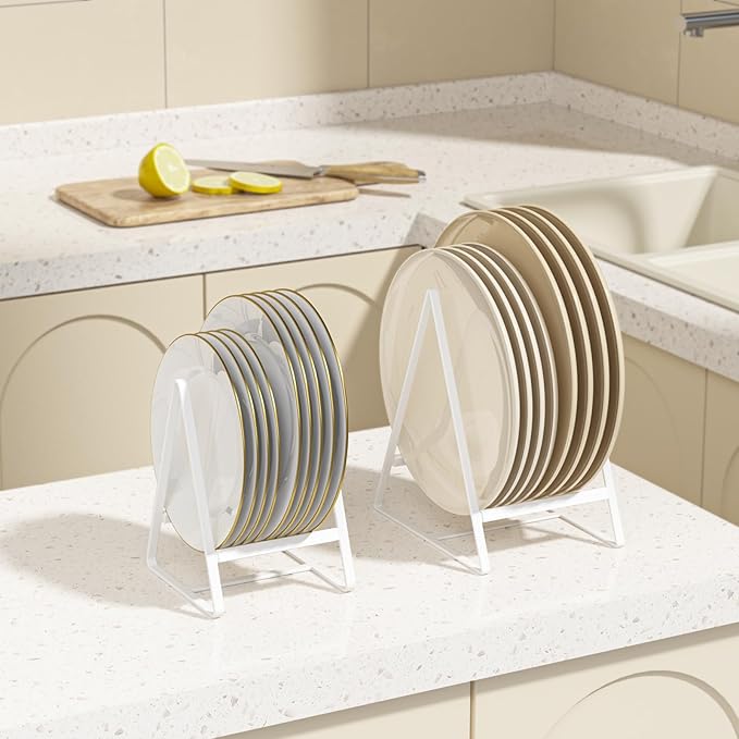 - Maximizes Kitchen Countertop Space: this plate holder pack can be free standing inside your cabinet, pantry or kitchen countertop, it keeps your plates well organized and neat all the time.