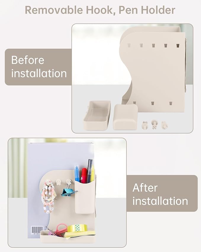 - 【Large, Expandable Bookend with Removable Hook, Pen Holder】- This bookend expands from 4.6 to 18.9 inches, providing ample space for books and files. It comes with a removable hook, pen holder that can be taken down or put up depending on your needs.