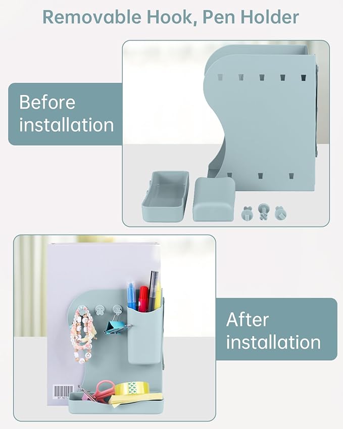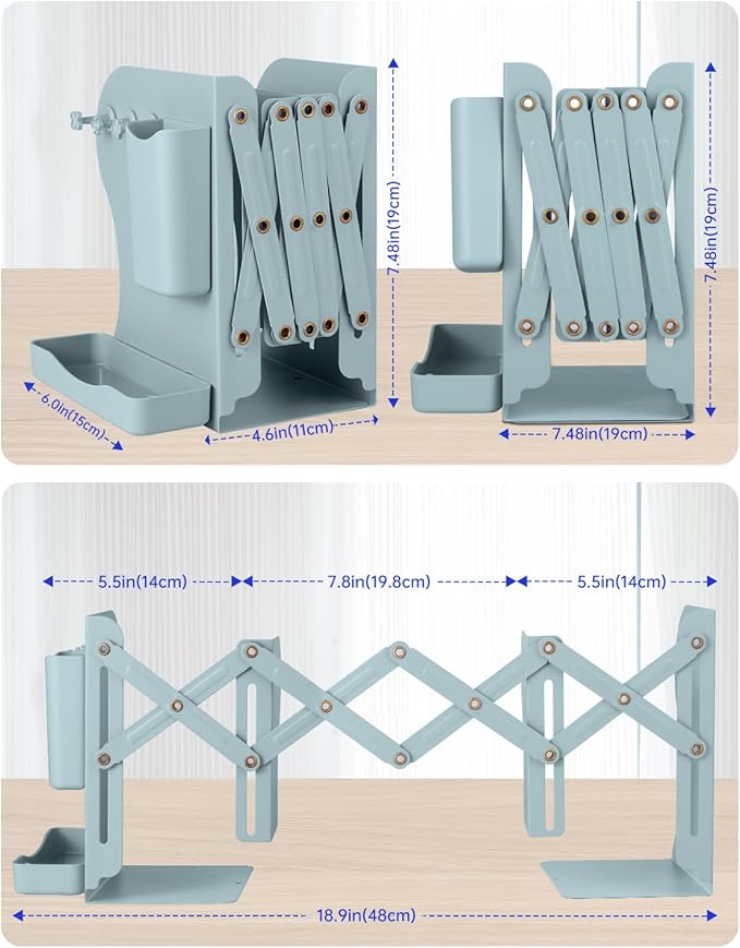 - 【Large, Expandable Bookend with Removable Hook, Pen Holder】- This bookend expands from 4.6 to 18.9 inches, providing ample space for books and files. It comes with a removable hook, pen holder that can be taken down or put up depending on your needs.