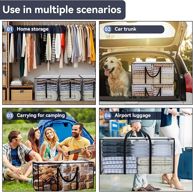- Premium Material: large clear plastic bags providing durability, breathability, and portability. Say goodbye to flimsy storage solutions and welcome a premium option for your clothes,Featuring strong #5 metal zippers, sturdy and wide handles, and reinforced seam lines, our clothing storage bags ensure long-lasting use. The foldable design allows for easy storage when not in use, clear moving bags heavy duty extra large making them perfect for under bed storage or closet organizers