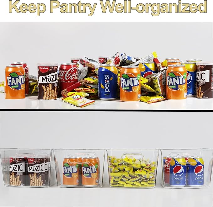4pcs Clear Storage Bins Clear Storage Containers for Kitchen Pantry Organization, Organizing Bins with Built in Handles, Cabinet Organizers