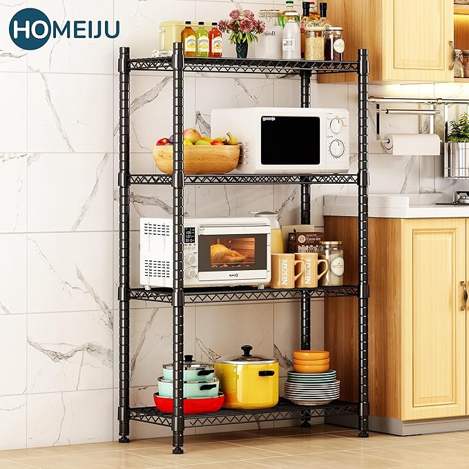 Homeiju 4 Tier Shelving Unit,Heavy-Duty Height Adjustable Storage Rack 1300 LBS Capacity with Adjustable Feet ,Metal Storage Shelves Wire Shelf for Kitchen Garage Laundry ,13.77"D x 35.43"W x 54.33"H
